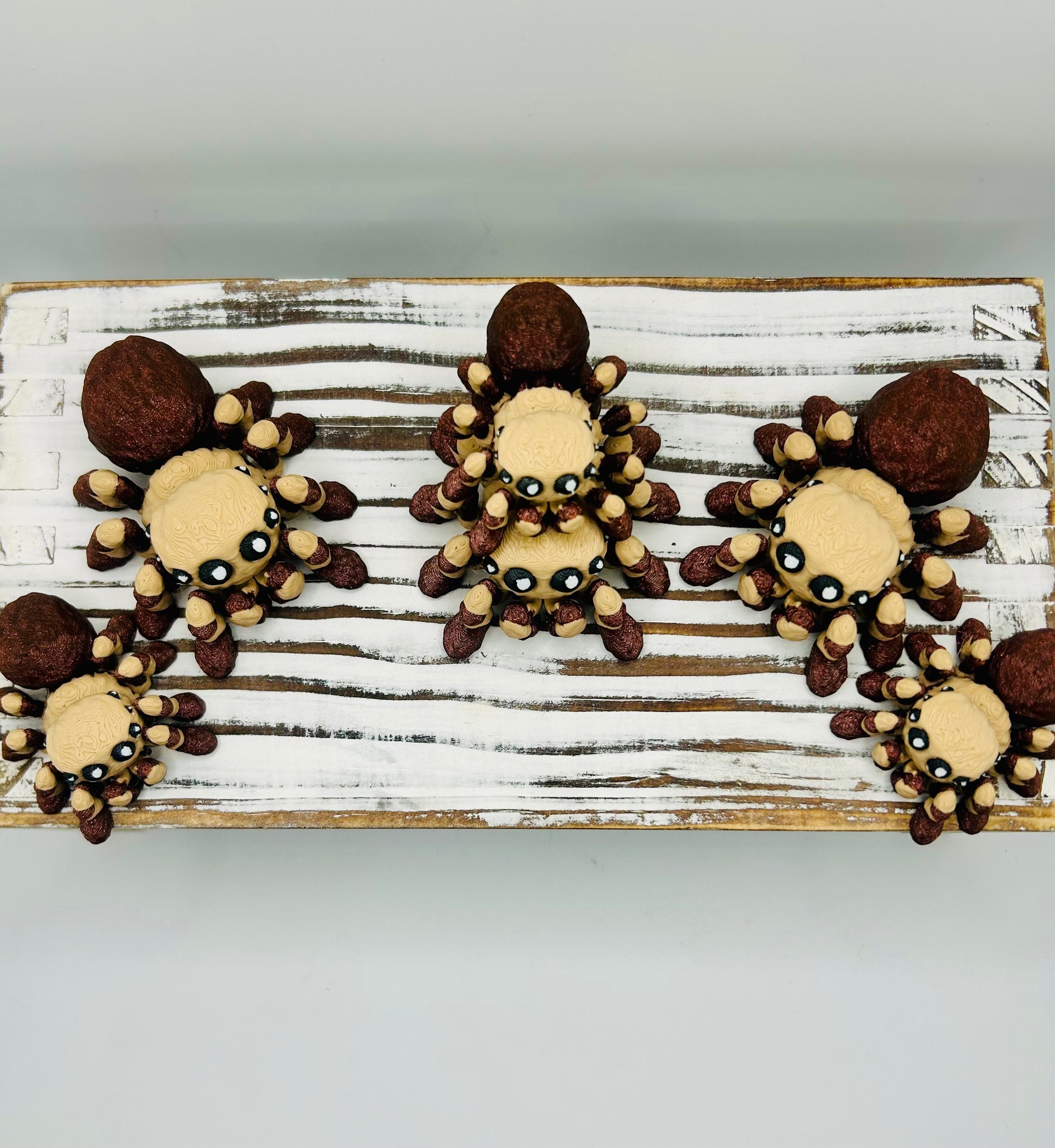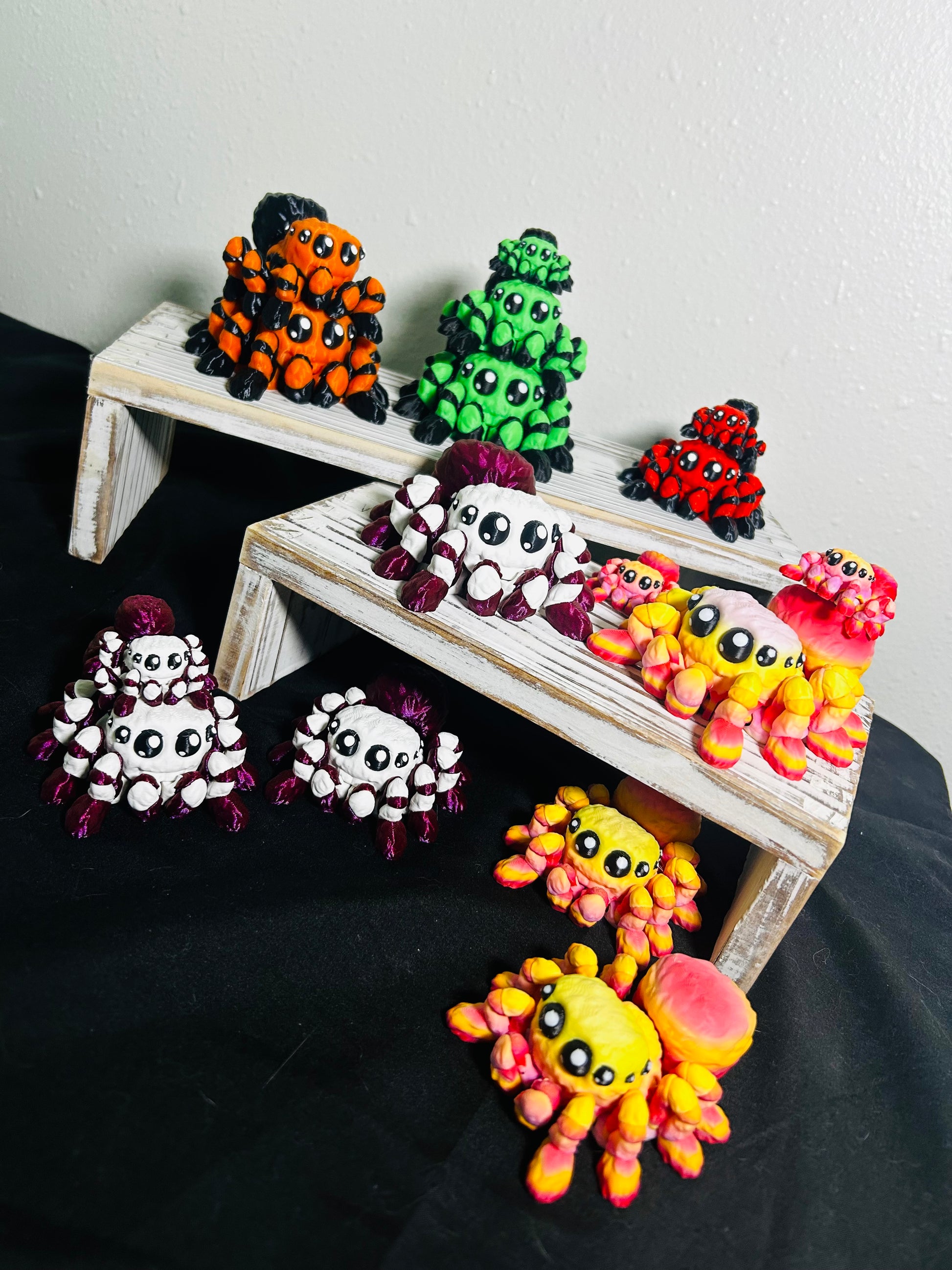 Bring home the cutest crawlies around! These 3D printed articulating jumping spiders are fun, flexible, and irresistibly charming. Each spider wiggles and moves when handled, making them the perfect fidget toy, desk buddy, or conversation starter.