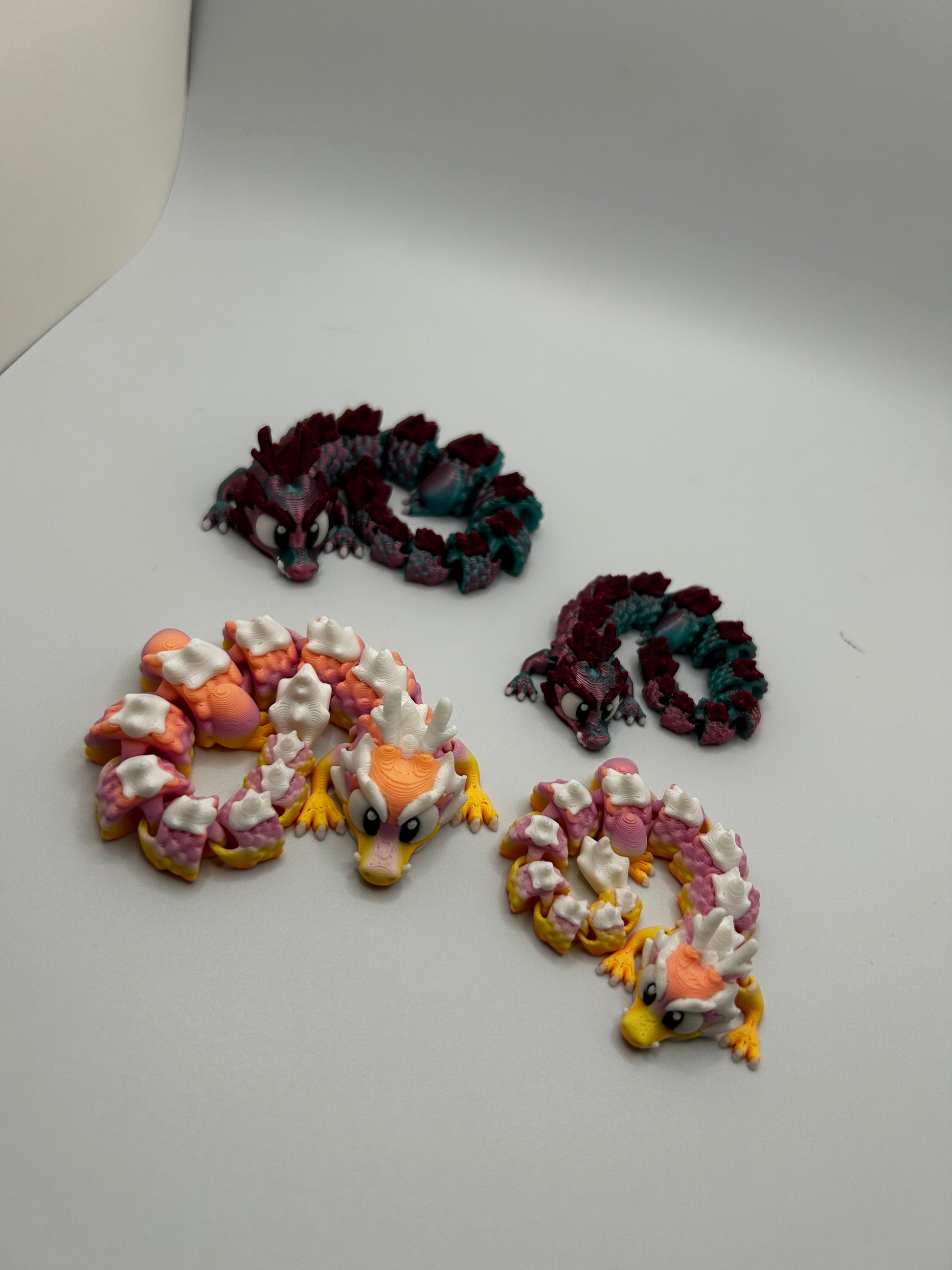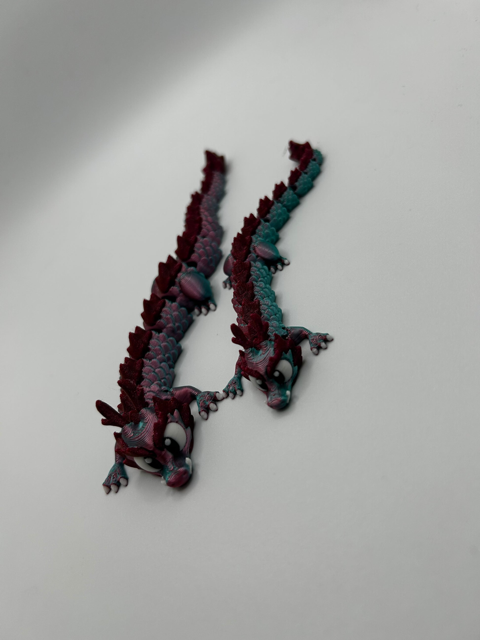 Bring fantasy to life with our 3D printed articulating Traditional Dragons that slither, stretch, and strike a pose! Inspired by classic dragon lore, these majestic creatures feature long spines, fierce faces, and flexible, articulated bodies that make them as fun to pose as they are to display.